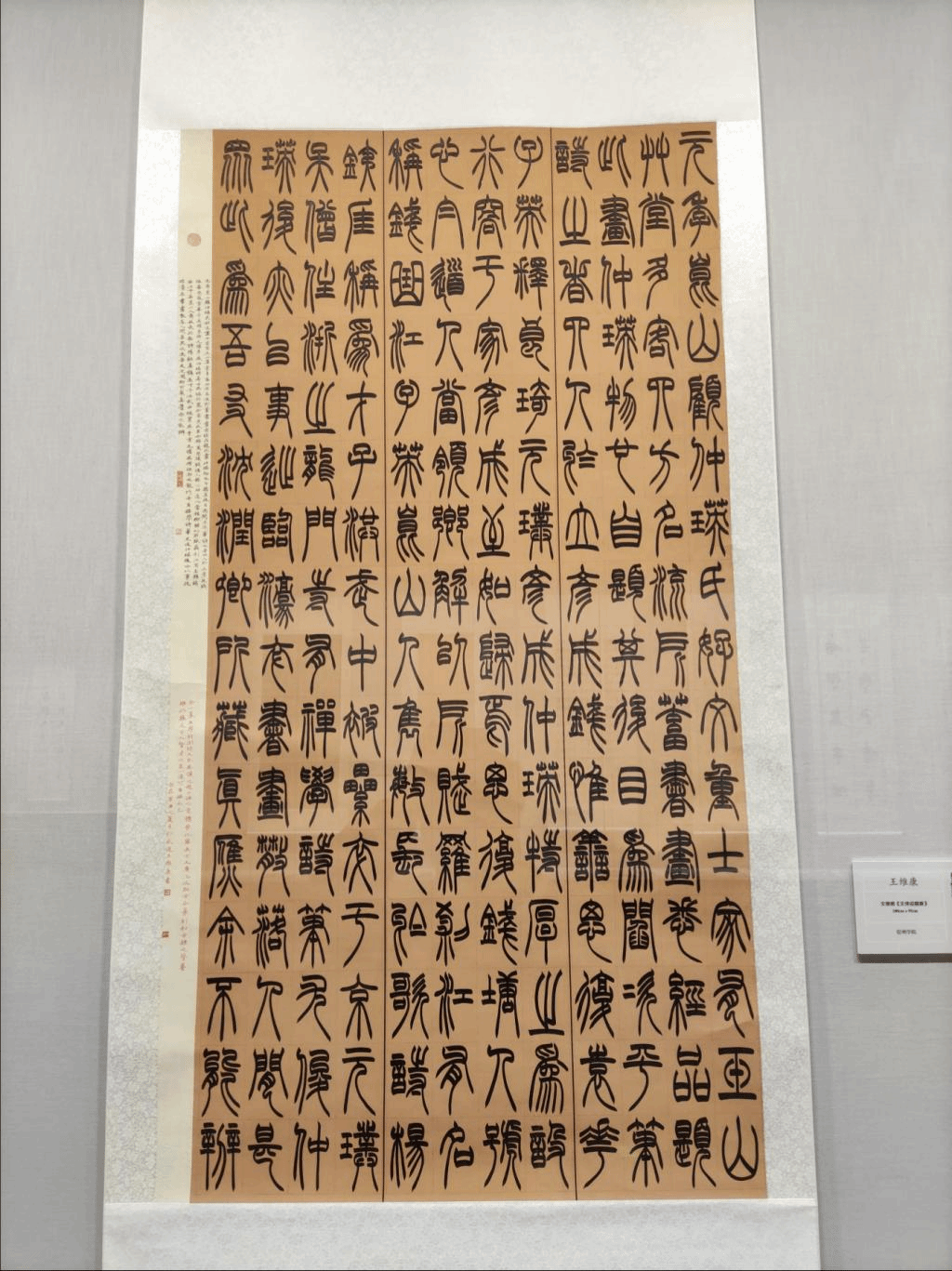 2021年10月10日至13日,历时4天的全国第三届大学生书法篆刻作品展评审工作在河南省郑州市圆满结束,2021年11月13日将在郑州市美术馆新馆全部展出。此次展览时值建党百年之际,既是向党的一次文化献礼,又是一次向社会集中展示我国高等书法教育成果的和当代大学生的青春风采和精神风貌的盛会。本次展览共收到4013件投稿作品,经过评委会严格评审,共有203位作者入展。宿州学院美术与设计学院书法学专业2018级大四学生王维康同学顺利入展,在此表示祝贺。(图为作者国展作品)