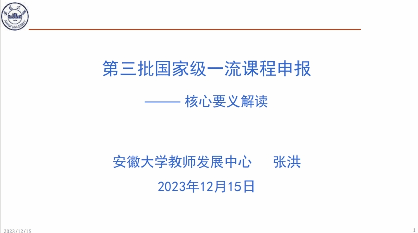 据《教育部办公厅关于开展第三批国家级一流本科课程认定工作的通知》(教高厅函〔2023〕24号)和《安徽省教育厅关于开展第三批国家级一流本科课程认定工作的通知》(皖教秘高〔2023〕166号)文件精神,为帮助省内高校老师做好第三批国家级一流本科课程的申报工作,在省教育厅高教处指导下,安徽省网络课程学习中心特邀请安徽大学张洪教授开展“第三批国家一流本科课程申报--核心要义解读”线上培训会。2023年12月15日,美术学教研室组织教研室全体教师参加此次线上培训会。