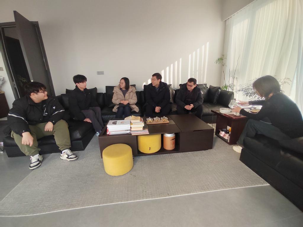为稳步推进学院2024届就业工作,有效提升毕业生就业质量,1月25日下午,美术与设计学院党委书记陈述立,党委副书记、纪委书记边洪强、环境与服设教研室主任颜虹影,学生管理科长王继峰等赴安徽苏和建筑装饰工程有限公司开展访企拓岗促就业专项活动,并亲切看望在公司实习的毕业生。