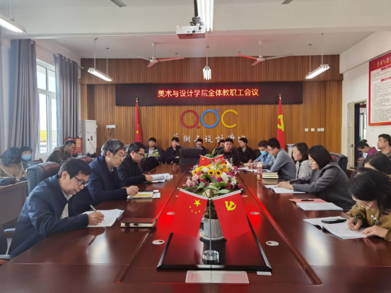 2022年11月2日下午,美术与设计学院在会议室召开全体教职工会议,会议由党委书记陈述立同志主持,党委副书记、院长许兴海,党委副书记、纪委书记边洪强及全体教职工参加会议。