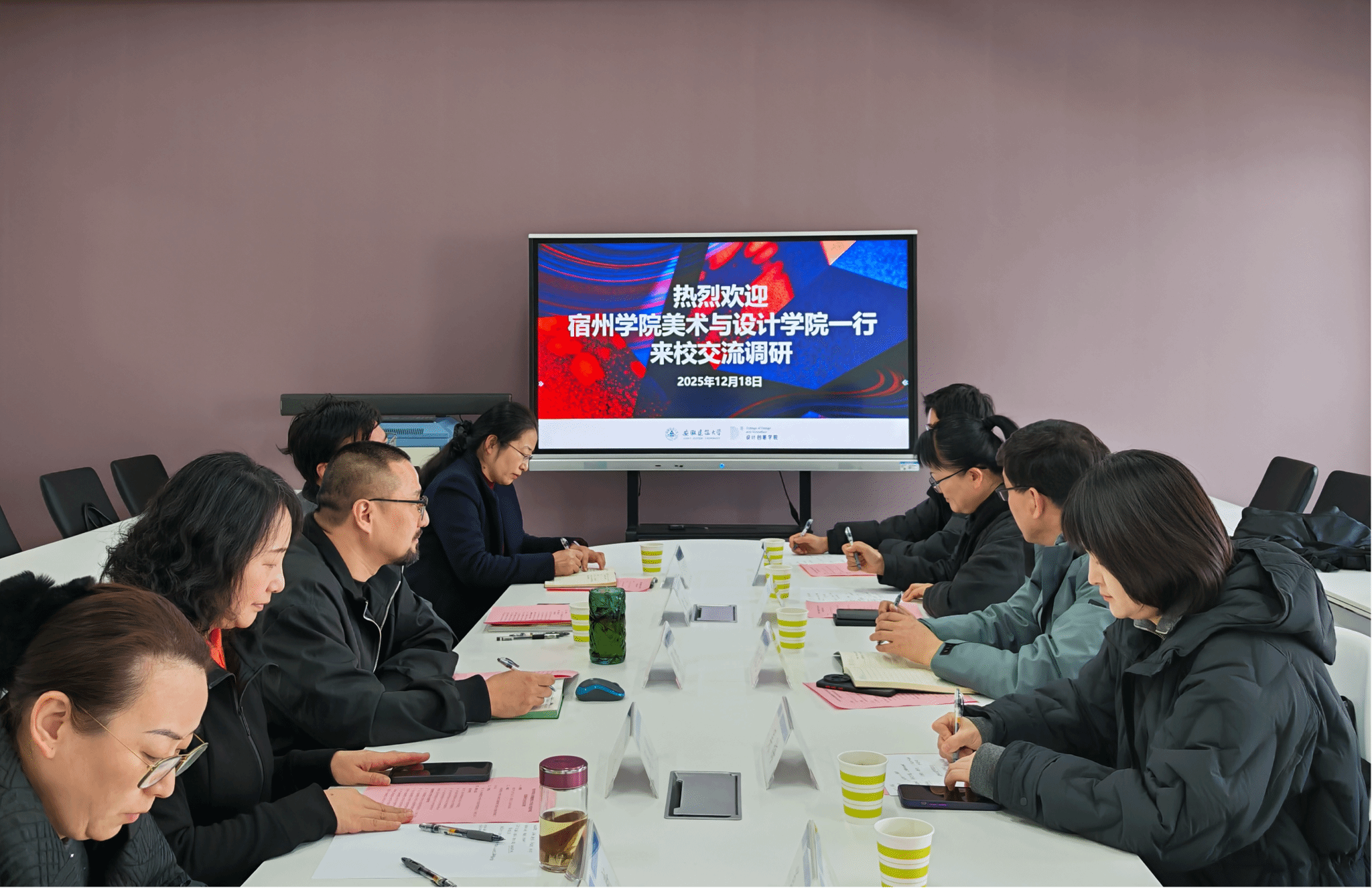 12月18日,美术与设计学院就加强专业建设、横向科研和硕士点建设赴安徽建筑大学设计创意学院开展考察学习。党委副书记、院长杨文艺、副院长李娟、吴梅以及学院教学、科研负责人一行5人参加了考察学习。