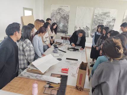 座谈会结束后,赵文坦老师紧接着来到了美术学专业的国画教室,现场进行了一场新鲜生动的绘画交流讲座,赵文坦老师不仅进行了现场示范还对学生的作品进行了现场点评指导,并就存在的问题进行了详细的讲解。他对学生们寄予期望,认为灵气加毅力才能创造出更完美的绘画作品。