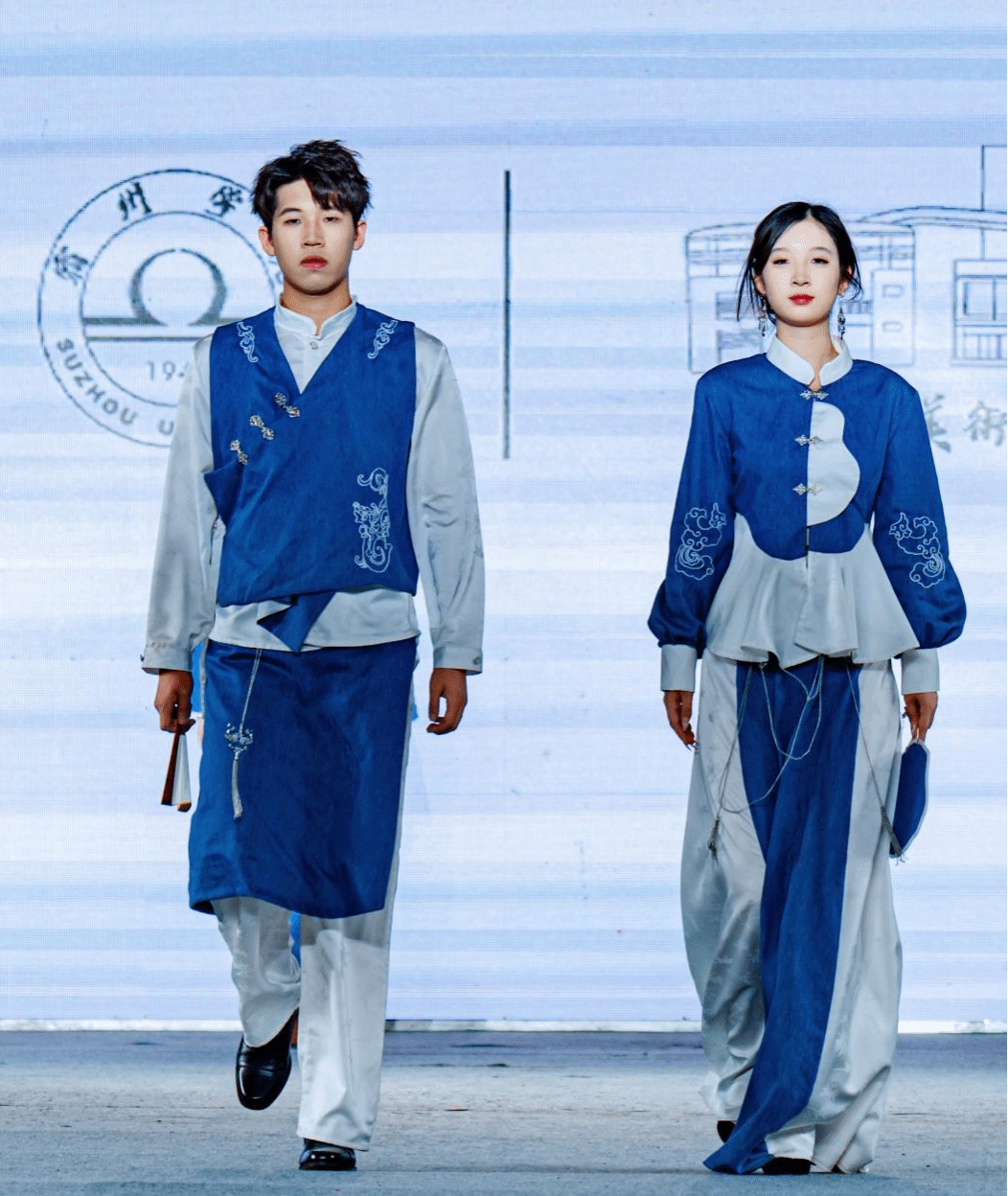 本次展演以“皖美宿造”为主题,所有作品在设计时立足皖北地域文化特色,融合埇桥书画、泗州戏、界首彩陶、凤阳凤画、阜阳龙虎尊等皖北非遗、皖北民俗等元素,通过美轮美奂的服装设计语言传递文化自信与时代精神,以艺术创作激发师生爱国爱校情怀和认识美、感受美、创造美的能力,也充分体现了我校应用型高素质专业人才培养的成果。