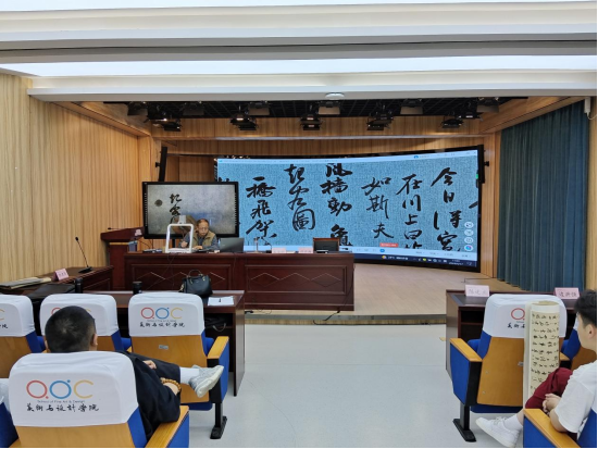 2024年4月17日上午,安徽省书法家协会副主席石海松先生来我院指导交流并受邀在美术与设计学院学术报告厅作了名为“书法临摹与书法创作的关系”的讲座。会议由美术与设计学院院长许兴海主持,院党委书记陈述立、副书记边洪强、书法学教研室主任秦琴、书法学专业部分教师和书法学专业学生参加了此次会议。