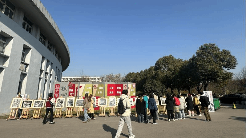 为认真学习宣传贯彻习近平新时代中国特色社会主义思想,2023年11月29日,在美术与设计学院党委的指导下,由美术学与书法学教研室党支部主办、22级美术学专业学生承办的“认真学习宣传贯彻习近平新时代中国特色社会主义思想——美术与设计学院《版画》课程结课作业展”在美术与设计学院艺术楼B楼前举行。