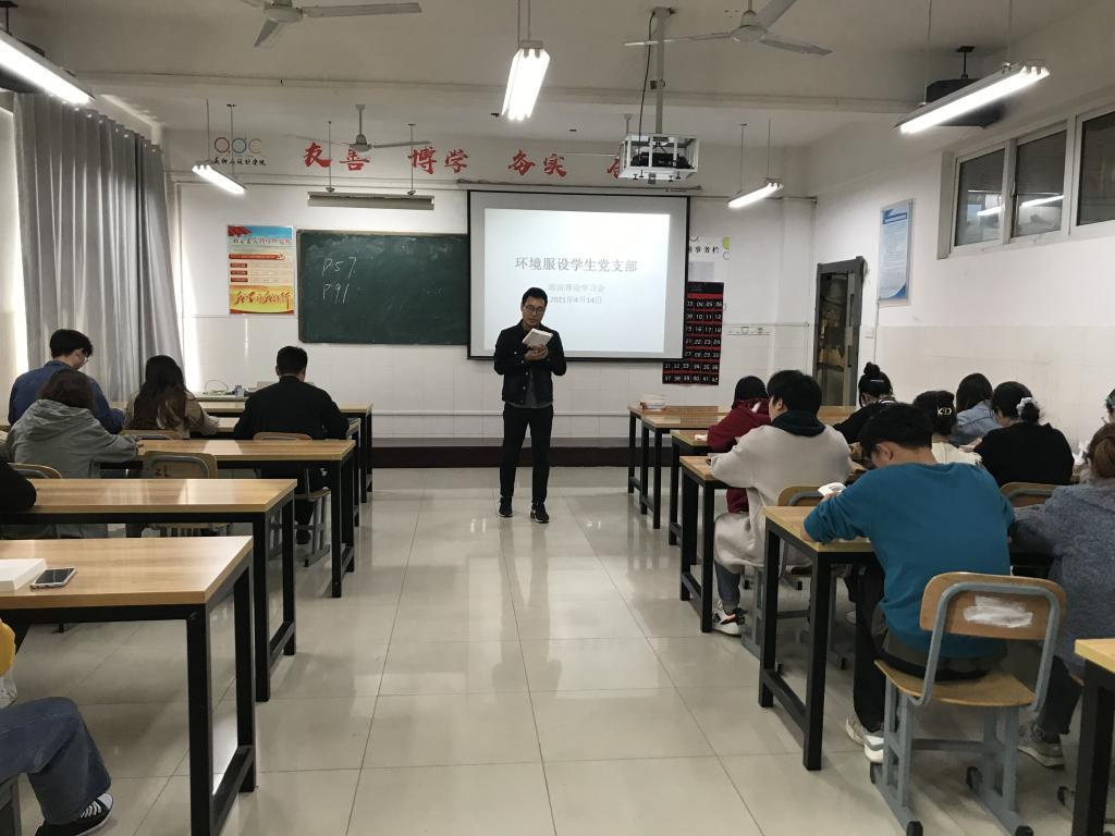 为庆祝中国共产党建党100周年,充分发挥党史的育人作用,2021年4月14日环境服设学生党支部开展“庆祝建党百年,分享党史故事”主题宣讲活动,使全体学生党员深入了解中国共产党历史,把党史宣传教育与革命传统教育、爱国主义教育相结合。一起传承时代文明,弘扬民族精神。