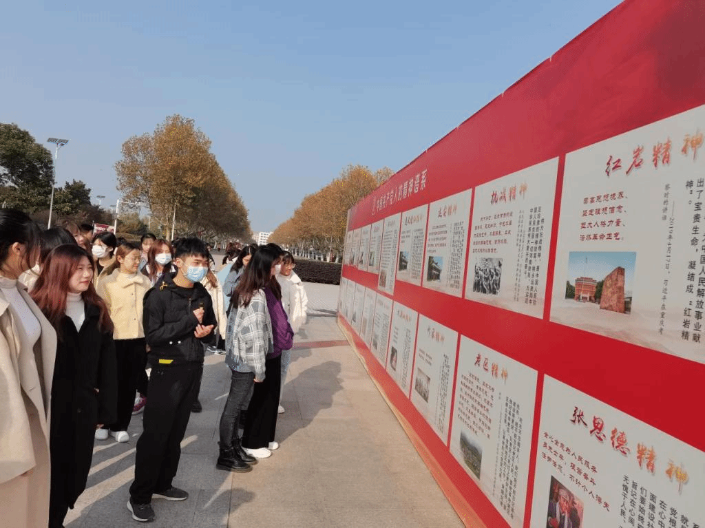 展板中西柏坡精神、脱贫攻坚精神、抗疫精神、雷锋精神等伟大的革命精神述说着中国共产党人的艰苦卓绝、气壮山河英勇斗争的精神,中国共产党人百折不挠,以大无畏的革命气概、顽强战斗的姿态,再现了中国共产党的历史,构筑起了中国共产党人的精神谱系。全体学生党员在参观过程中认真学习抗战英雄、党史故事,深刻体悟一代又一代中国共产党人顽强拼搏、不懈奋斗的革命精神。革命烈士、英雄人物、先进模范伟大的爱国主义热情激励着在场的每一位共产党员。