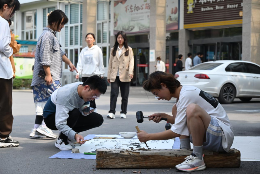 现场弥漫着浓浓的墨香,路边摆上供学生写字的宣纸,路过的同学们驻足欣赏,他们用自己的笔墨表达了对党和国家的热爱,居安思危、奋勇前进、兼善天下等成语跃然纸上,满怀同学们对党的二十大的美好祝愿。此次活动立足特色书法学专业,发扬优秀传统文化,同时彰显出广大学生们一心向党、同心为党、敬党爱党的政治情怀,以及健康向上的精神风貌。