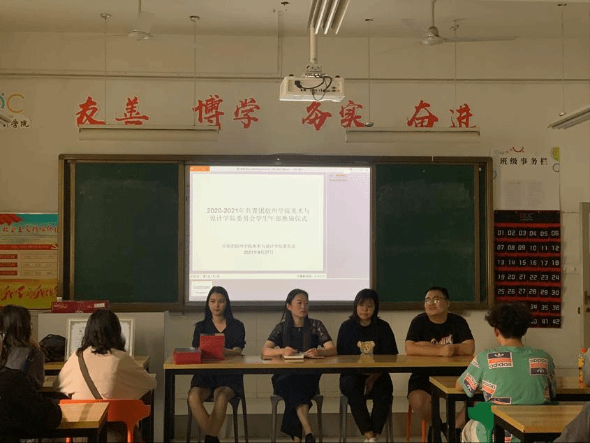 9月27日中午1点,在美术与设计学院B205举办2021-2022学年共青团宿州学院美术与设计学院委员会学生干部换届大会。分团委书记王静老师、团副盛敏、学生会主席郭德胜、各部门部长及新一届学生会全体学生干部参加此次活动。