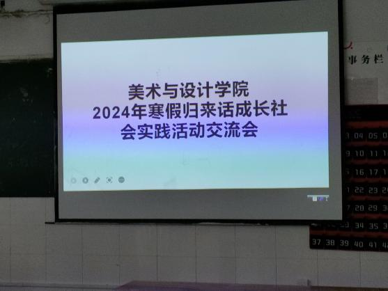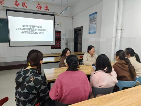 为了促进假期社会实践活动分享交流,让更多的同学了解并参与到假期社会实践中来,同时为同学们分享参加暑期社会实践活动经验提供一个平台,让同学们了解到寒假社会实践活动的意义,鼓励他们积极参加社会实践活动。为此,2月26日,美术与设计学院举办了寒假归来话成长社会实践交流会。