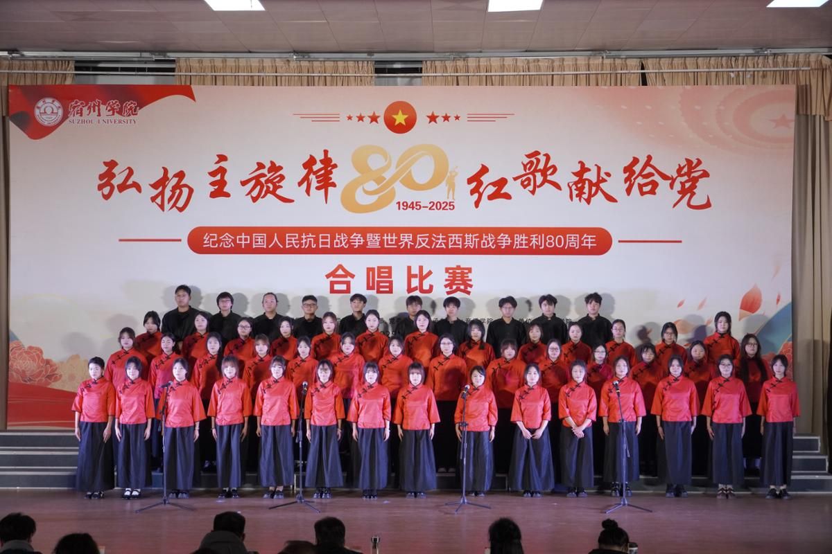 为纪念中国人民抗日战争暨世界反法西斯战争胜利80周年,学校举办“弘扬主旋律 红歌献给党”合唱比赛。美术与设计学院师生代表组成的合唱队,以朗诵搭配演唱的创新形式演绎《我的祖国》,凭借出色的舞台编排、扎实的演唱功底和昂扬的精神风貌,在众多参赛队伍中脱颖而出,荣获一等奖。