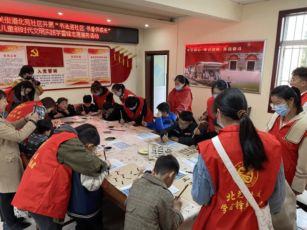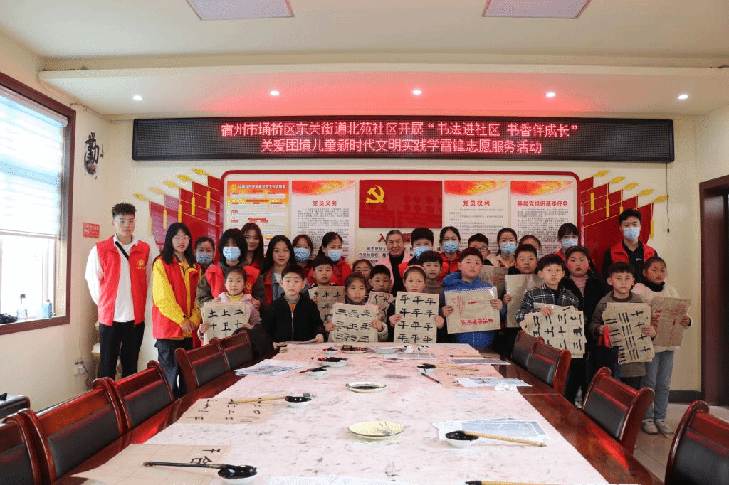 弘扬雷锋精神,展志愿者风采。为让新时代的儿童更好地传承中华民族优秀文化,培养爱国情怀,宿州学院美术与设计学院团总支联合宿州市北苑社区于3月27日上午10:00开展以“书法进社区,书香伴成长”为主题的“雷锋月”志愿服务活动。本次活动由美术与设计学院团总支主办,美术与设计学院学生会承办。