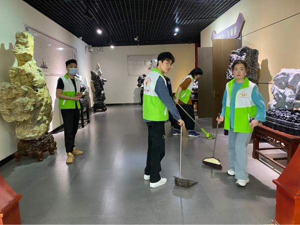 早上八点同学们抵达宿州博物馆,为开幕仪式做准备。通过展览,同学们感受到了浓厚的艺术氛围。随后,志愿者们为前来参观的各位老师端茶倒水,认真倾听老师对书画技法的传授,同时又观看了本次画展。这不仅是一次有意义的志愿服务,更是一次对专业知识上的提升学习。志愿者朝气蓬勃接待来参观的市民,让大家感受到了志愿者们的热情。参观结束,志愿者对博物馆展厅进行了认真的打扫。