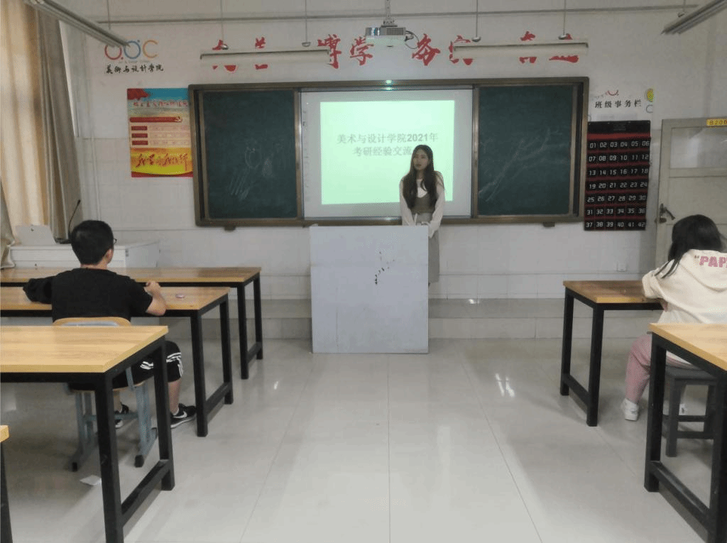 为深入贯彻落实习近平总书记在中央党史学习教育动员大会上的重要讲话的精神,围绕“学党史、悟思想、办实事、开新局”,主动走进学生,进一步做好考研经验交流工作,2021年5月20日中午,由美术与设计学院举办的考研经验交流会在艺术楼B206如期举行。美术与设计学院党委书记陈述立、美术与设计学院党务秘书边洪强、团总支书记王静、辅导员王继峰出席本次交流会。本次交流会由我院考研成功的学生传授考研经验。