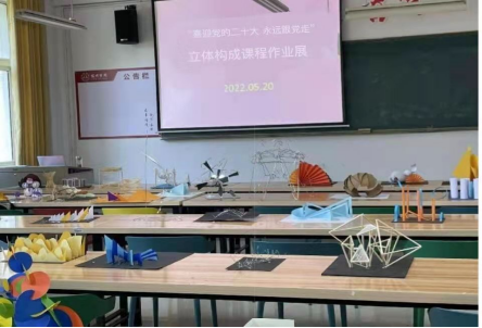 为深入学习贯彻习近平总书记在庆祝中国共产主义青年团成立100周年大会上的重要讲话精神,激发青春活力,逐梦新时代,建功新征程,以实际行动迎接党的二十大胜利召开,6月2日,美术与设计学院2021级环境设计2班在艺术楼C楼举办了一场丰富多彩的“喜迎党的二十大 永远跟党走”立体构成作品展。
