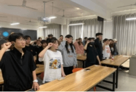 入团誓词,是共青团对团员行为要求的“指南针”,更是对人民作出的庄严承诺。本次活动由分团委书记王静主持,王静老师带领同学们重温入团誓词并朗诵五四铭诗,一字一句声情并茂地将同学们拉回历史长河的记忆里,以振兴中华、救亡图存的革命精神唤起同学们对新时代的责任感,进一步激发了同学们对五四精神的共鸣。多一次的重温,心中就多增添一份信念,通过学习,同学们从历史中汲取精神力量、吸取经验智慧。以坚定的理想信念和坚强的意志,捍卫入团初心和誓言,积极发挥团员青年的模范作用。在鲜红的团旗前,同学们怀着崇敬之心举起右手,在领誓人的带领下,字字铿锵,重温入团宣誓,唤起入团初心,神圣纯粹、坚定无悔。