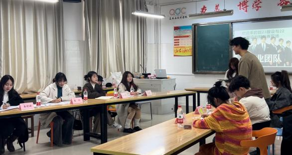2023 年 11 月 22 日下午 2 点 30 至 4 点,美术与设计学 院服装与服饰设计辩论赛在美术与设计学院教室 B 楼 b207 隆重举行, 此次辩论赛的题目是“'衣' 以载道,'文质彬彬 ’乎?——该不该以貌取人?”此次辩论赛吸引了同学们的广泛关注。