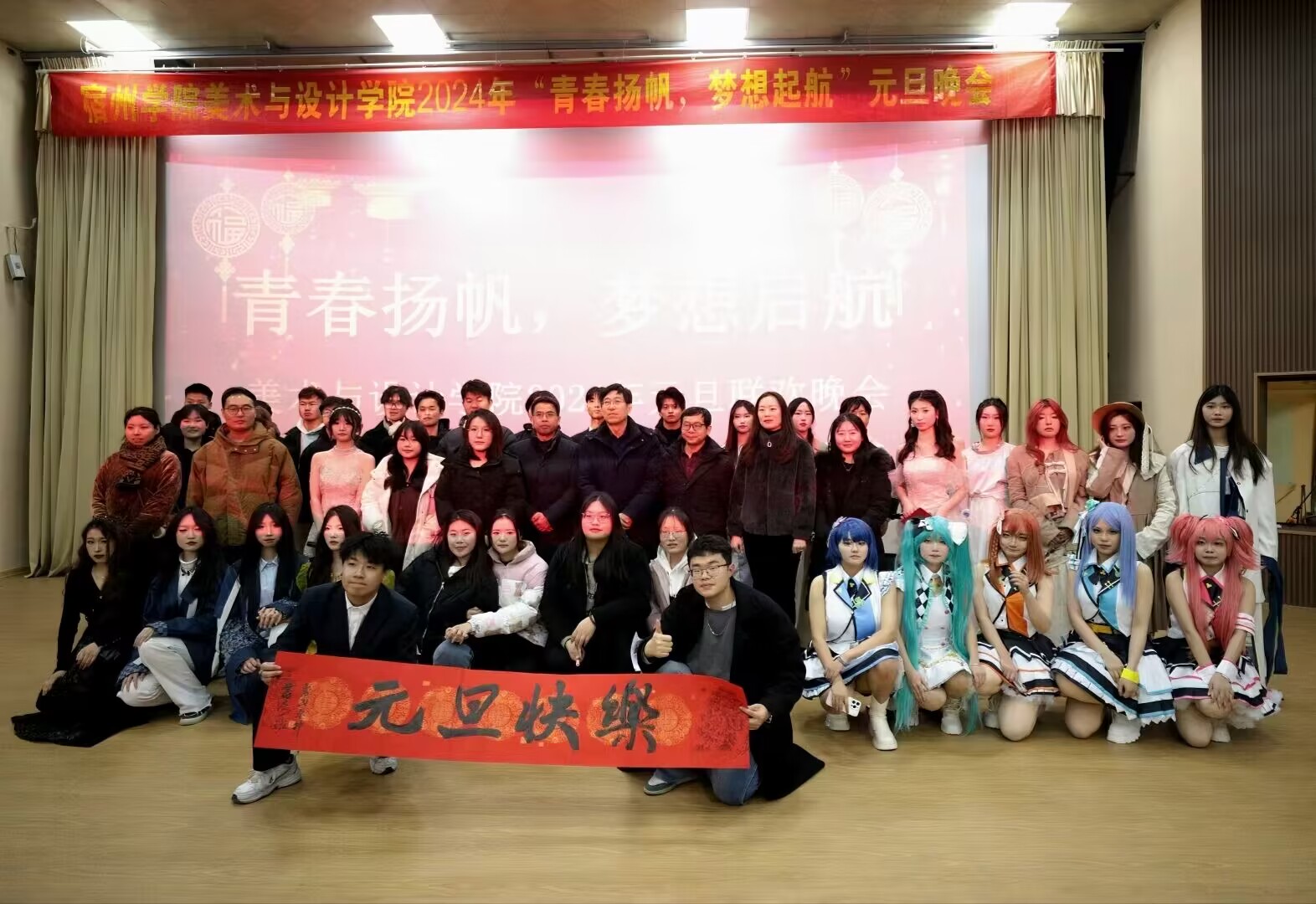 12月25日晚,美术与设计学院在大学生活动中心举办“青春扬帆,梦想起航”元旦晚会,共庆新年。美术与设计学院党委书记陈述立,党委副书记、院长许兴海,副书记、纪委书记边洪强及全体师生参加元旦晚会。