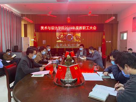 4月8日,美术与设计学院2019年度教职工大会在艺术楼B402会议室顺利召开。校工会主席王勇同志、学院党政领导班子全体成员、中层干部及教职工,共计53人参加会议。会议分为主现场(大会主席团成员)和钉钉视频(其余教职工)两部分。大会由学院党总支书记吴晓沛主持。