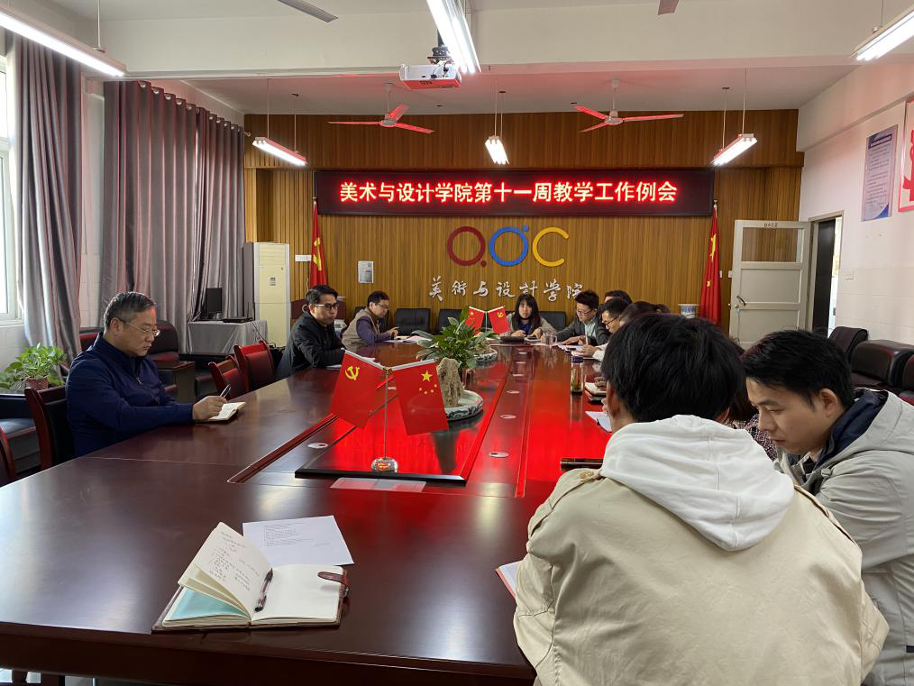 11月11日下午,美术与设计学院在艺术楼会议室召开本学期第十一周教学工作例会,副院长许兴海(主持工作)及教学部门相关人员参加会议,会议由许兴海同志主持。