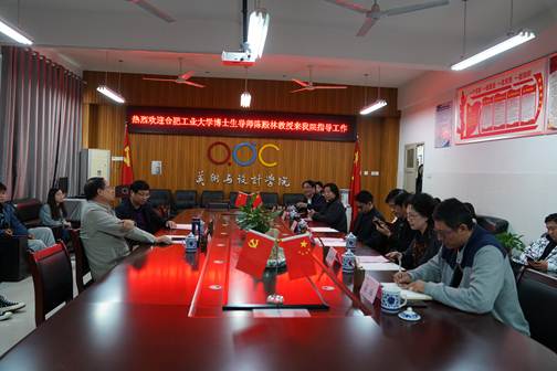 10月28日上午,合肥工业大学博士生导师陈殿林教授来我校指导并召开座谈会。会议由党总支书记吴晓沛主持、党委委员纪委书记监察专员王俊、美术与设计学院院长许兴海、美术与设计学院学院教授李杰、教研秘书朱纯军、马克思主义学院党总支书记赵国付参加会议。
