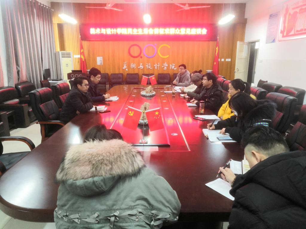 1月13日下午,美术与设计学院在艺术楼B402会议室召开了2020年度处级领导班子民主生活会前征求群众意见座谈会。各党支部、教研室及学生代表参会,会议由美术与设计学院党委书记陈述立主持。