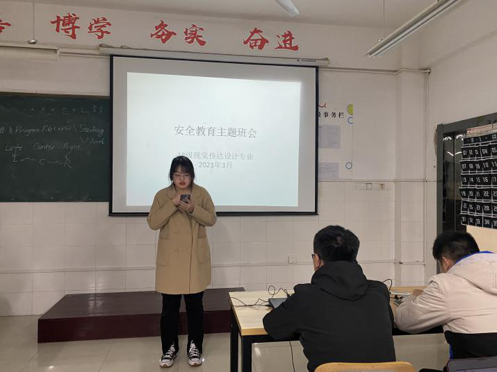 3月19日,18级视觉传达设计专业全体同学于美术与设计学院b303教室开展了安全教育主题班会活动。班会目的是为了让同学们了解身边与我们的生活息息相关的安全隐患,掌握安全知识,培养学生“珍爱生命,安全第一”的意识,做到让同学们远离诈骗,交通隐患,用电隐患等安全隐患,让同学们树立更好地自我保护意识。