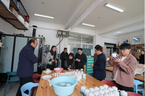 会前,朱峰一行对美术与设计学院展厅、各专业实验室进行实地参观调研,对我院的教学模式和学生的动手能力及创作水平有了深入细致了解,企业负责人表示出了强烈的人才需求欲望。