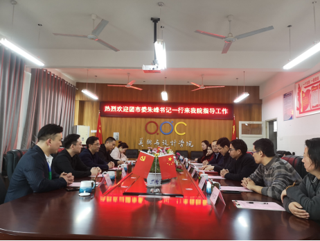 3月25日下午,团市委副书记朱峰一行来我院指导交流。宿州学院团委书记凌峰、宣传科科长陈宇、美术与设计学院党委书记陈述立、院长许兴海接待朱峰一行,美术与设计学院全体科级干部及各教研室主任参与。