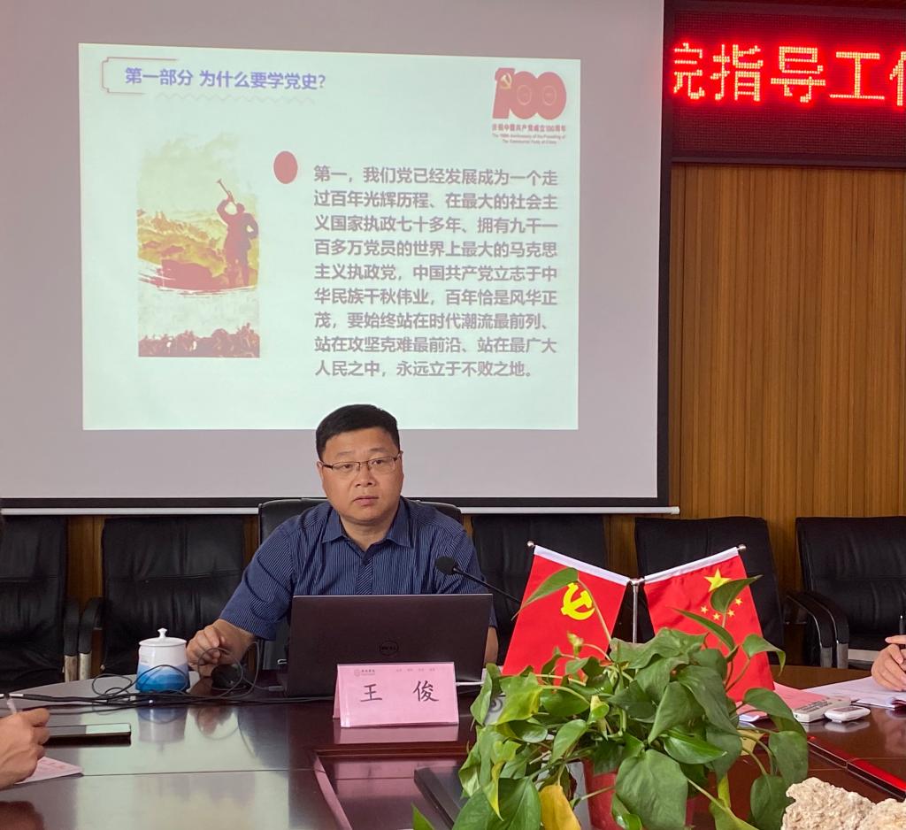 王俊书记指出,学习党史要认真研读党史基本著作,全面了解中国共产党百年奋斗的光辉历程和伟大贡献。我们党的一百年,是矢志践行初心使命的一百年,是筚路蓝缕奠基立业的一百年,是创造辉煌开辟未来的一百年。学习党史要深刻把握开展党史学习教育的重点,做到学史明理、学史增信、学史崇德、学史力行,教育引导全党同志学党史、悟思想、办实事、开新局。在党史学习过程中,关键是要树立正确的党史观,学懂弄通做实习近平新时代中国特色社会主义思想,增强“四个意识”、坚定“四个自信”、做到“两个维护”。他强调,征途漫漫,惟有奋斗。在中国共产党百年华诞的重大时刻和“两个一百年”奋斗目标历史交汇的关键节点,我们要更加紧密地团结在以习近平同志为核心的党中央周围,以昂扬姿态奋力开启全面建设社会主义现代化国家新征程,以优异成绩迎接建党一百周年!