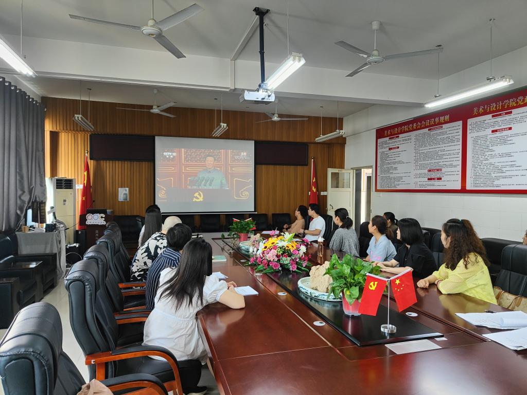 7月1日上午8时,中共中央在北京隆重举行庆祝中国共产党成立100周年,中央媒体进行直播。美术与设计学院组织师生在学院会议室、一食堂二楼等地收看现场直播。