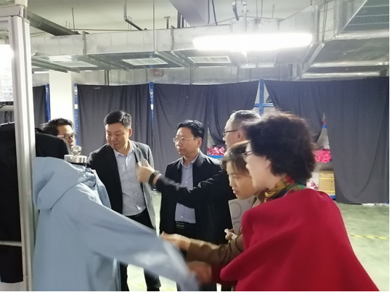 在陈光伟的陪同下,杨维志一行实地考察了智能制衣吊挂系统、裁剪车间、样衣间,双方就高校就业实习基地建设、学生创新能力培养、企业需求与学科建设、校企合作切入点等问题展开了深入的交流。