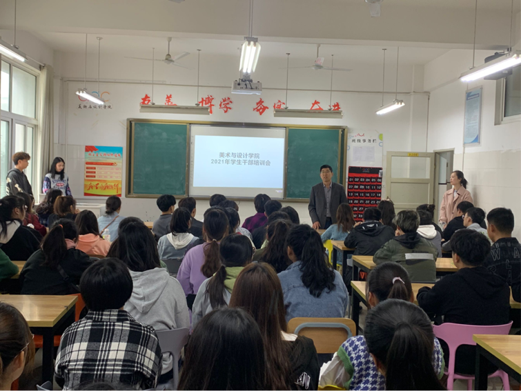 为了学生会工作更好的展开,同时也为促进我院学生会相关工作的不断完善。10月18日,美术与设计学院召开2021年全体学生干部工作培训会。院党委书记陈述立,党委副书记、纪委书记边洪强,院团委书记王静以及学生会全体学生干部参加了此次培训会。