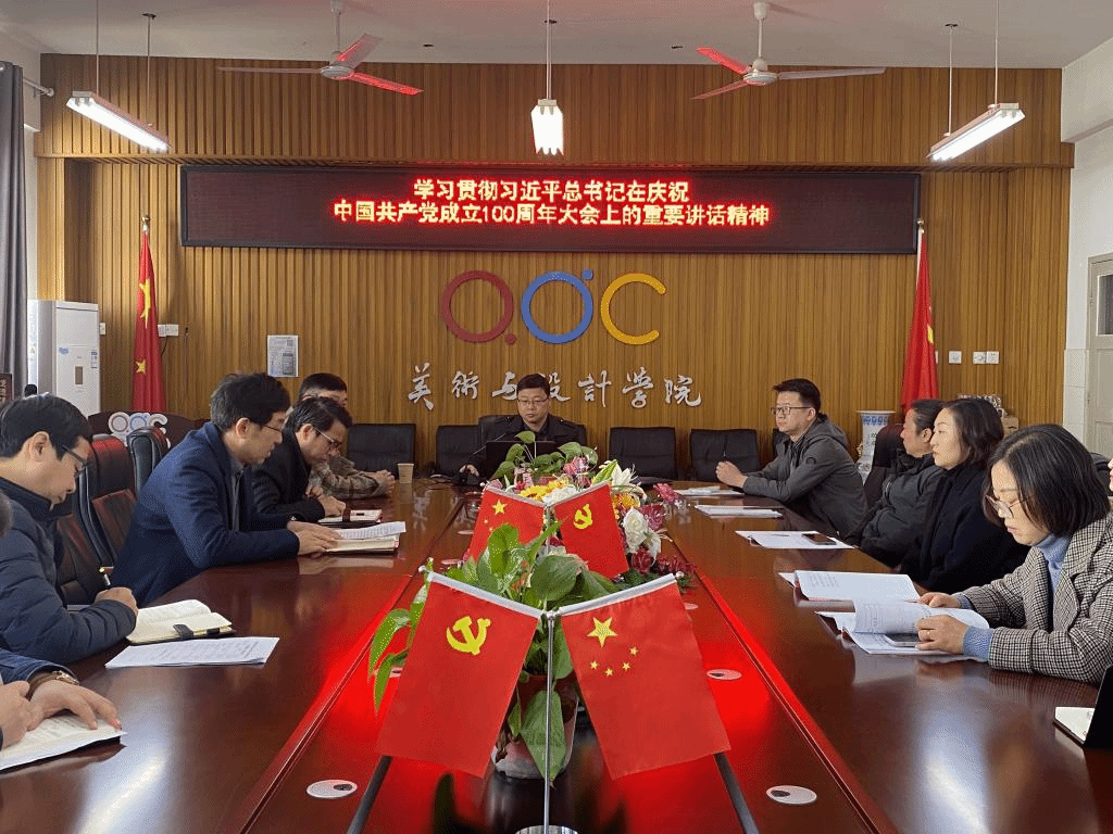 11月12日上午,校党委委员、纪委书记王俊在美术与设计学院B402会议室宣讲习近平总书记在庆祝中国共产党成立100周年大会上的重要讲话精神,学院领导班子成员、全体教职工、学生党员代表参加会议。