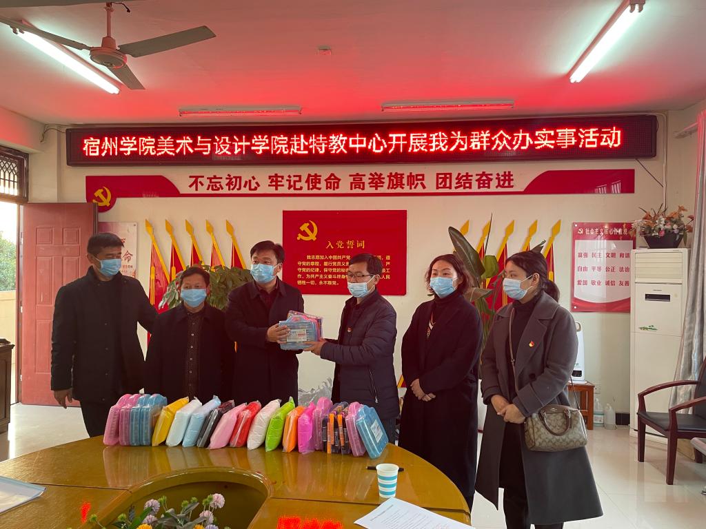 为扎实推进党史学习教育,学习领会习近平总书记“七一”重要讲话精神和党的十九届六中全会精神,贯彻落实“我为群众办实事”实践活动,宿州学院美术与设计学院党委副书记、纪委书记边洪强一行6人于11月26日走进宿州市特教中心开展校地共建献爱心活动。