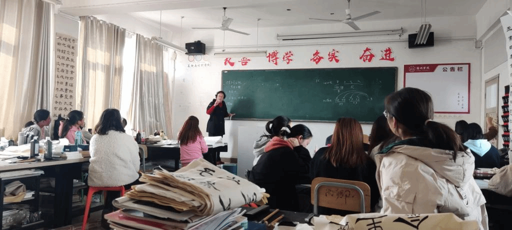 随后,张丽华先生来到书法学专业教室开展学术讲座,讲座中,围绕诗词欣赏、格律等基本常识,结合自己的经验感悟,进行幽默生动、深入浅出、通俗易懂的讲解,传授诗词写作的十六字口诀——“进入状态、想象画面、搜集意象、列锦寓情”,并现场作诗吟诵,给在场听众留下了深刻印象。