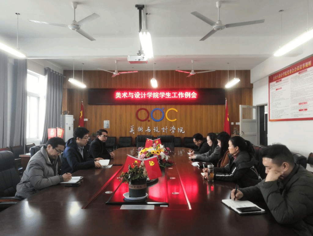 2022年2月28日,美术与设计学院召开辅导员工作例会。美术与设计学院党委书记陈述立,党委副书记、院长许兴海,党委副书记、纪委书记边洪强,以及全体辅导员参加会议。