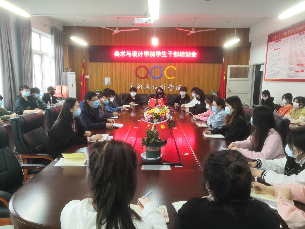 为贯彻落实党的十九届六中全会精神,全面落实立德树人根本任务,提高学生干部的整体素质,加强学生队伍的凝聚力、战斗力,3月16日中午,美术与设计学院于艺术楼B楼会议室召开学生干部培训会。院党委书记陈述立、副书记,纪委书记边洪强、团委书记王静、辅导员王继峰以及学生干部代表参加。会议由王继峰主持。