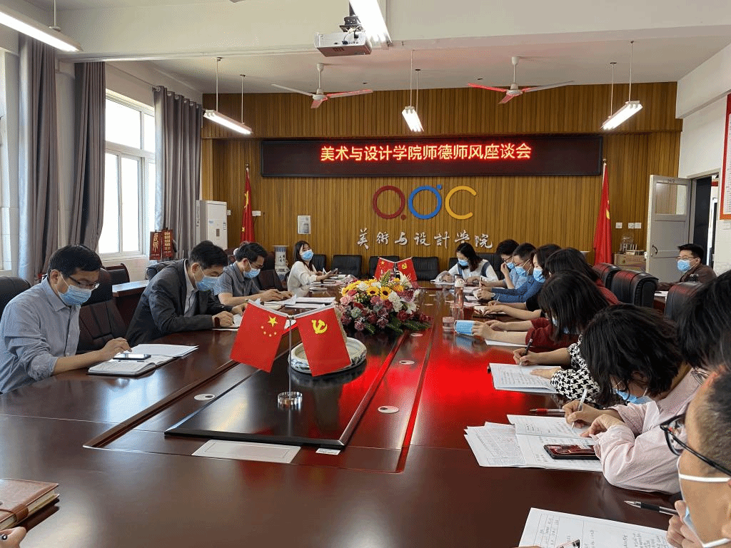2022年5月5日,美术与设计学院在艺术楼会议室召开了“师德师风建设月”座谈会,会议由院党委书记陈述立主持,院党委副书记、院长许兴海、院党委副书记边洪强及部分教师代表参加会议。