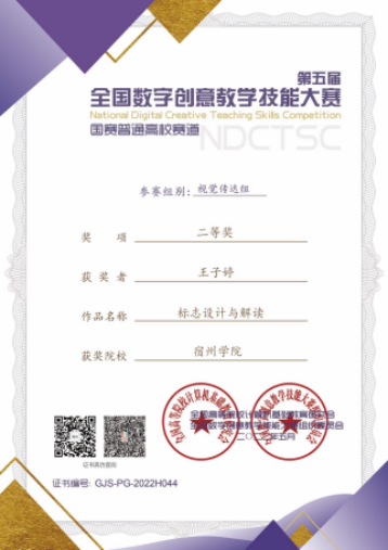 近日,《中国好创意暨全国数字艺术设计大赛官网》公布了第五届全国数字创意教学技能大赛获奖名单,我院视觉传达设计教研室教师王子婷在本次大赛中荣获二等奖。