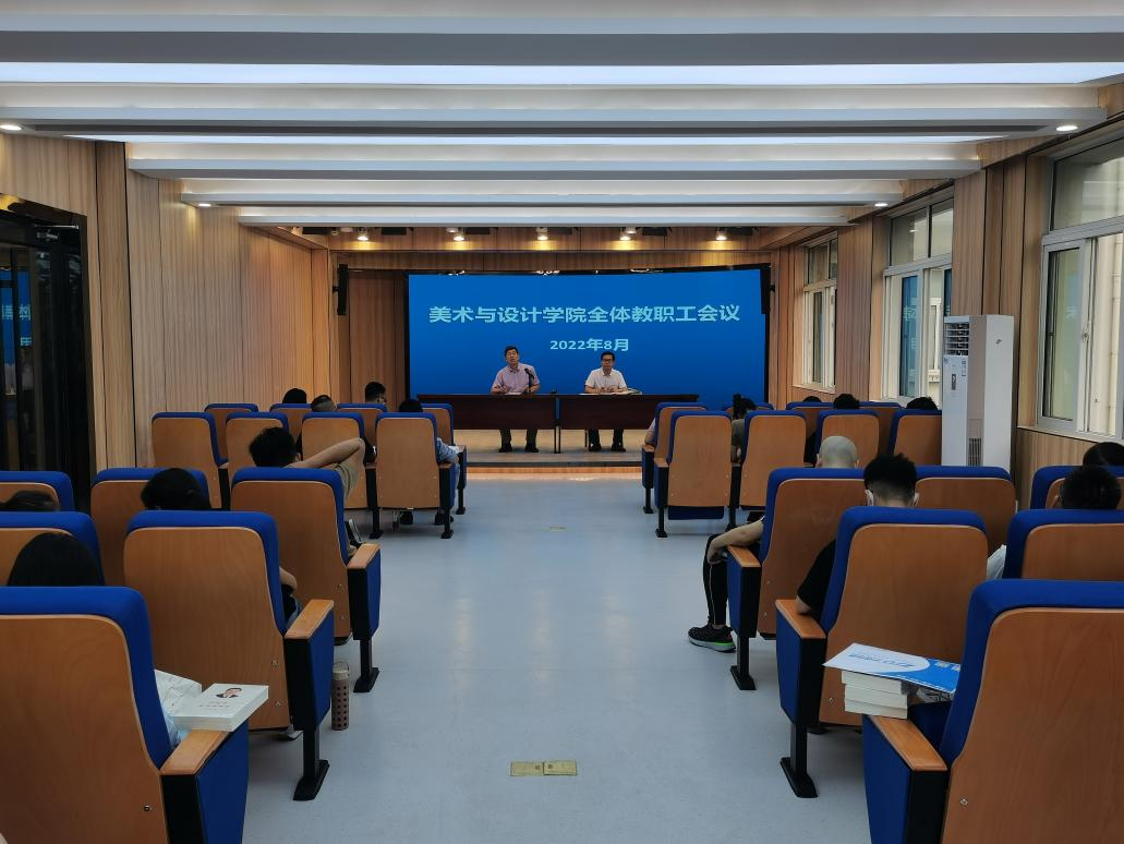 2022年8月27日下午,美术与设计学院在会议室召开全体教职工会议,会议由党委书记陈述立同志主持,全体教职工参加会议。