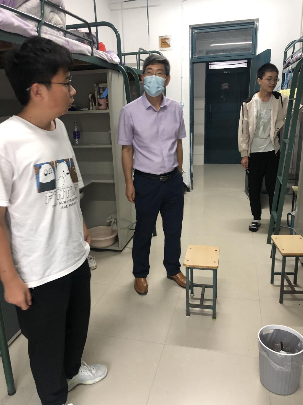 走进宿舍后,学院领导亲切地和新生们打招呼,聆听新生入学感言,并询问新生对大学生活的感受。在宿舍走访过程中,陈述立、许兴海与边洪强悉心询问每一位同学的姓名和家庭住址,表示如果同学们在宿舍生活上有困难,可以及时和学院沟通,学院会给予同学们最大的帮助。许兴海鼓励同学们发扬奋斗精神,勤奋学习,提醒同学们要尽快适应大学生活,努力提升自己。陈述立对新生提出了殷切期望,向同学们送上了真切的关怀和慰问,激励同学们要珍惜大学生活,做好人生规划,书写奋斗青春。