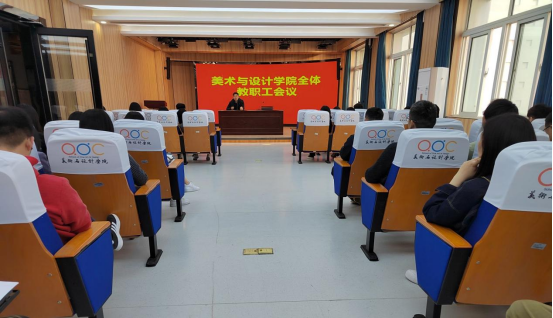 2023年3月8日,美术与设计学院在会议室召开全体教职工会议,会议由党委书记陈述立同志主持,全体教职工参加会议。