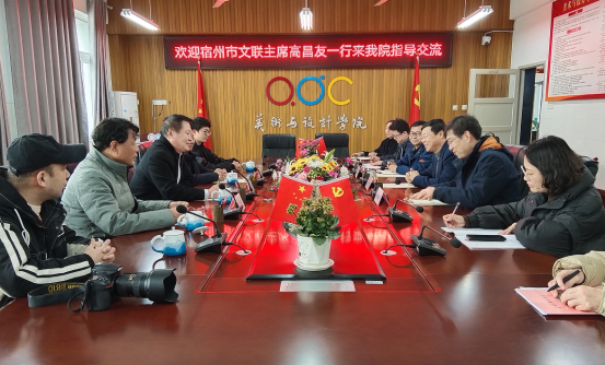 为贯彻党的二十大精神,按照校地、校企合作共建的相关要求,2023年3月23日宿州市文联主席高昌友、宿州市美术家协会秘书长王亚军、安徽大伟园林绿化工程有限公司董事长邱大伟等一行五人来美术与设计学院洽谈校地合作共建事宜。宿州学院党委委员、纪委书记、监察专员汪俊出席会议并讲话,美术与设计学院党委书记陈述立主持会议,美术与设计学院副书记、纪委书记边洪强及全体科级干部、教研室主任参与会议。