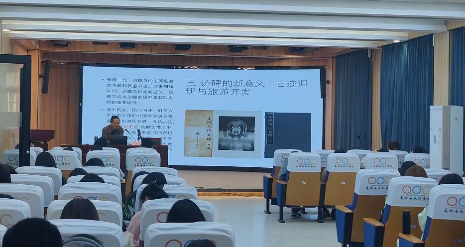 2023年3月28日上午,南京艺术学院教授叶康宁同志受邀在美术与设计学院报告厅作了名为“黄宾虹的访碑图”的讲座。讲座由美术与设计学院书法学专业教研室主任秦琴同志主持。书法学专业部分教师及全体学生参加了此次活动。