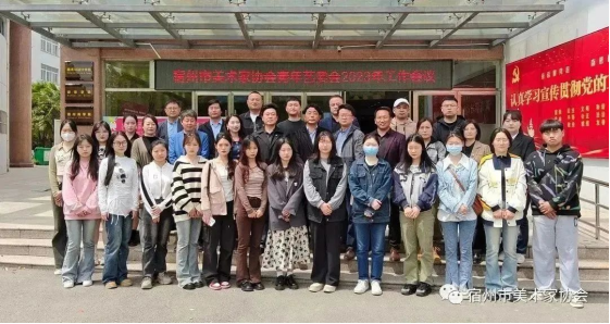 马阳阳对2023年度青年艺委会的重点工作进行了安排部署。并具体阐述宿州美协成立青年艺委会的宗旨与目的,为了聚集更多年轻的美术工作者、美术爱好者来参与对宿州市本土题材的发掘和创作。推动本土题材美术创作的学术研究,营造宿州市及宿州学院良好的艺术氛围,艺委会各县区代表分别作了发言。