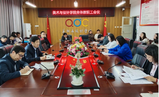 2023年5月10日,美术与设计学院在艺术楼B402会议室召开了全体教职工会议,会议由党委书记陈述立主持,党委副书记、纪委书记边洪强及全体教职工参加会议。