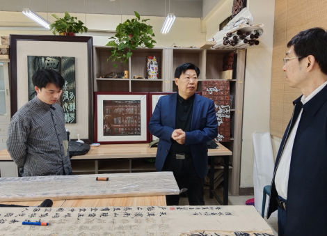 会后,张其凤教授在陈述立及书法学教师陪同下参观了展厅、书画临摹室、书画陈列室、刻字实验室、陶艺实验室、书法专业教室并进行实验室汇报等。张其凤教授也肯定了实验室对于学科建设的重要性,同时,也给出了具有发展性的建议,使我们受益匪浅。