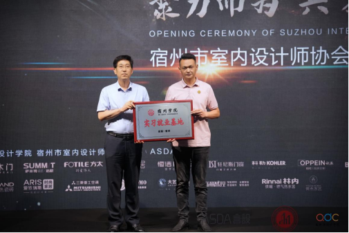 随后,陈述立代表美术与设计学院授予宿州市室内设计协会“宿州学院实习就业基地”牌,与宿州市室内设计协会正式建立校企合作关系。