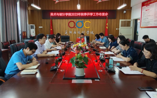 2023年8月30日下午,美术与设计学院在会议室召开2023年秋季开学工作布置会,会议由美术与设计学院党委书记陈述立主持,院党委副书记、院长许兴海、党委副书记、纪委书记边洪强及院务委员会成员参加会议。